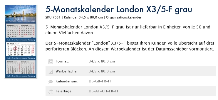 "5-Monatskalender London 2019"